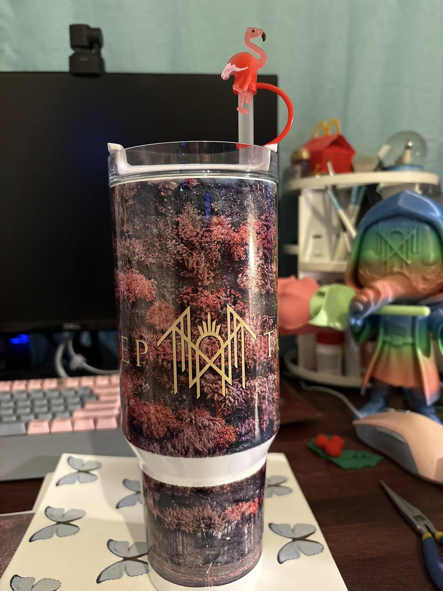 Fully customizable sublimation tumbler with your choice of cup color and image. The cup holds about 40 ounces of you drink of your choice.